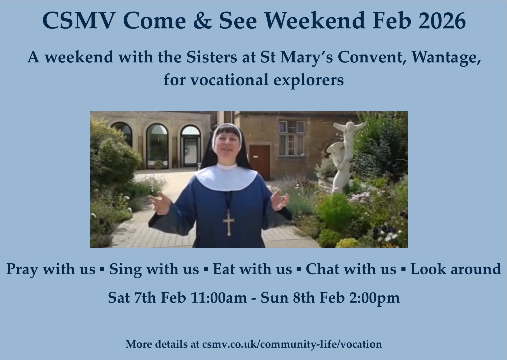 Spend a weekend with the Sisters at St Mary's Convent, Wantage, for vocational explorers. Pray, sing, eat and chat with us, and explore the convent.