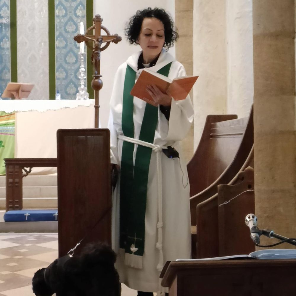 The service was held to celebrate St Francis Day and the congregation included the vicar's own furry friend, Chelsea.